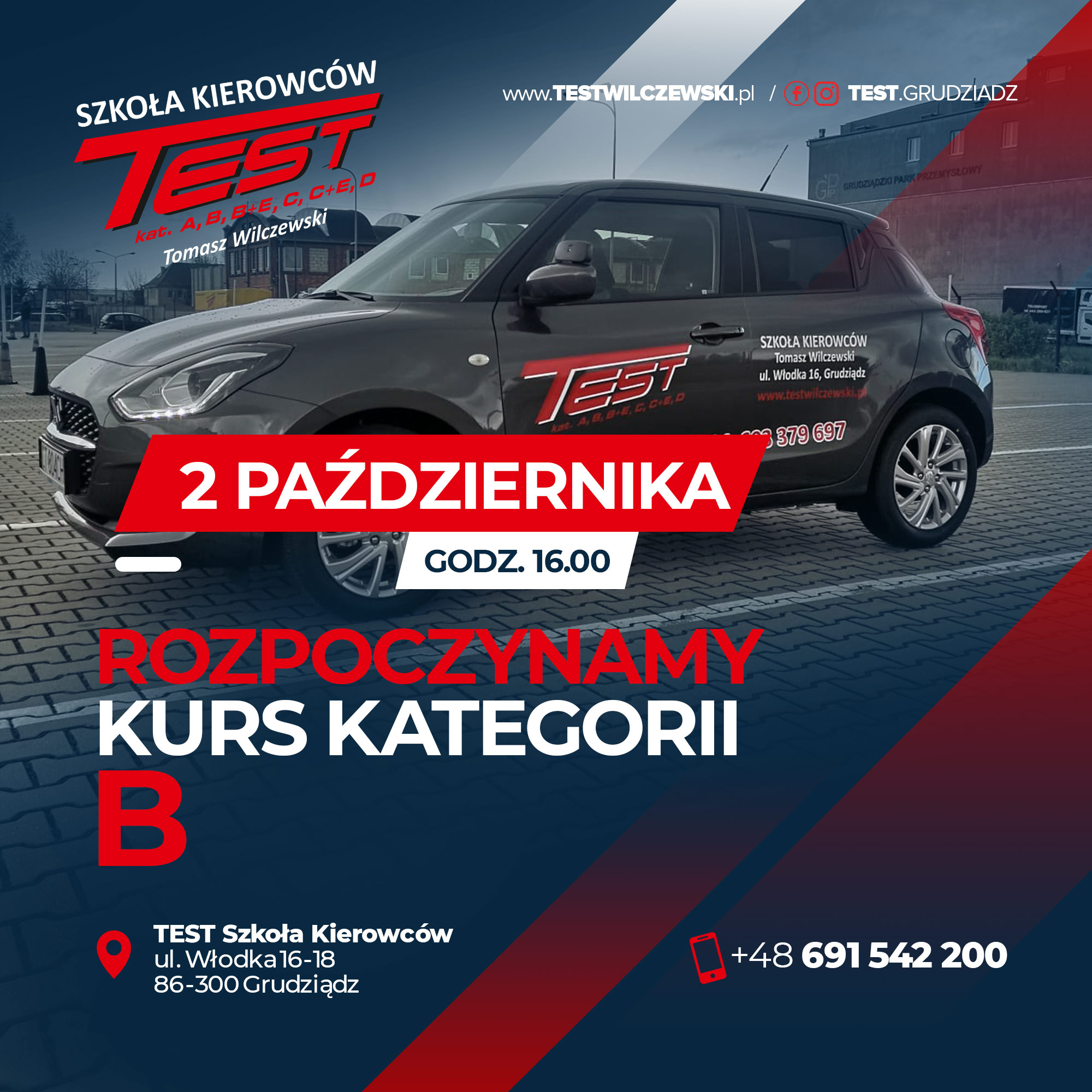 Zapisu na kurs możecie Państwo dokonać osobiście, telefonicznie, a także przez FB oraz IG (test.grudziadz). Jesteśmy wszędzie dostępni. Nie czekaj, zapisz się już dziś!